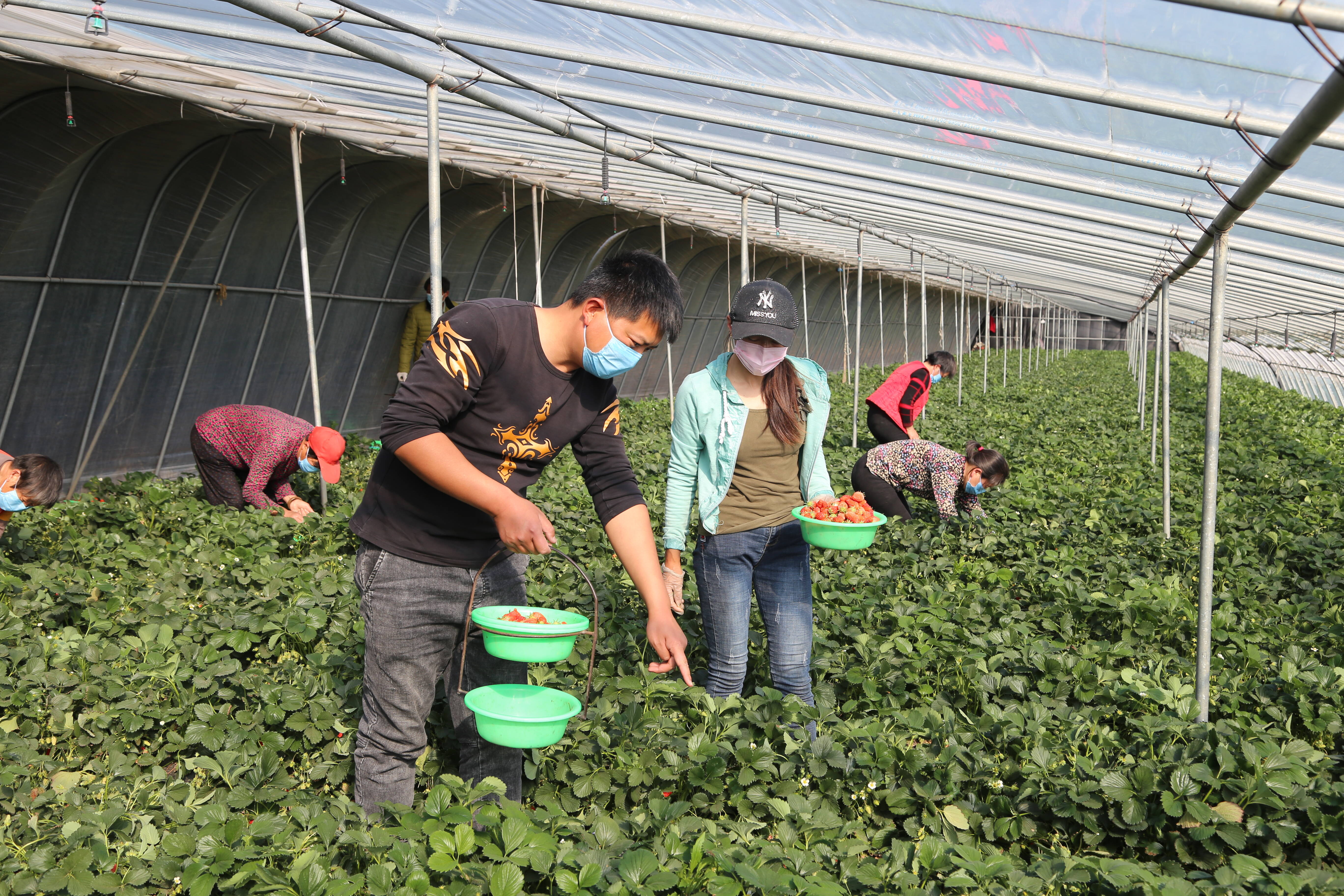 △乡村“好青年”王飞在大棚对工人进行培训和技术指导