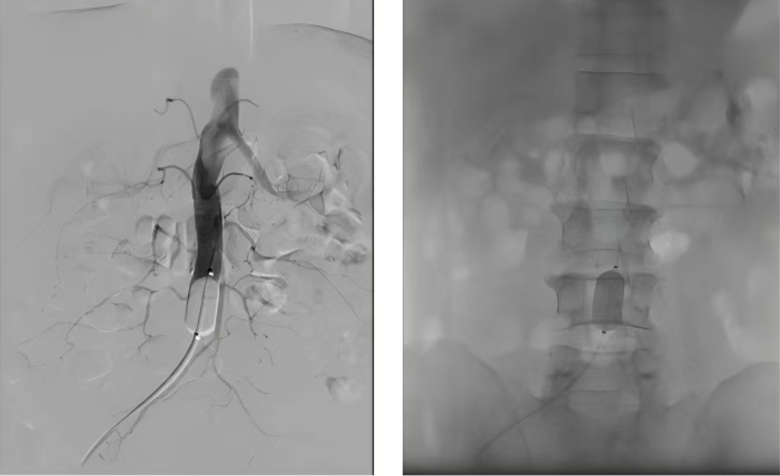 介入放射科团队率先行动,精准实施腹主动脉球囊阻断,暂时控制了肿瘤的主要“补给线”,为大手术清场,保证了操作空间的安全与清晰。