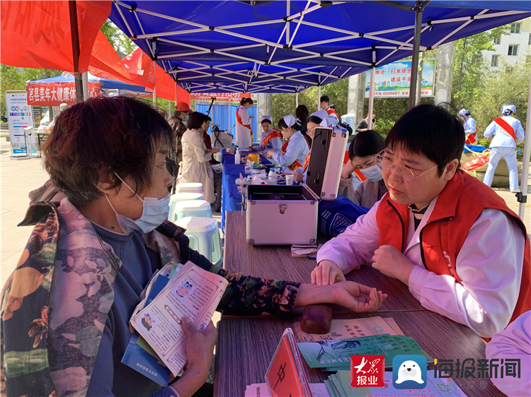 活动现场,医疗团队免费为居民提供血压血糖测量、眼部健康检查、中医理疗等便民服务。