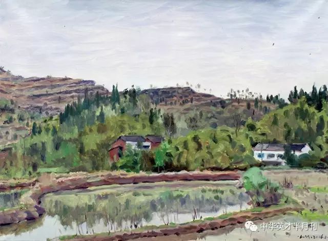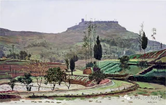 “我本擅长肖像和风景,后来为什么选择风景,跟小时候的经历有关。在我的老家,乡亲们都非常坚韧,每天辛勤劳作,把一方土地整治得欣欣向荣。虽然这种劳作之后的收入可能很微薄,但他们总有种心酸的满足。这也体现了中国人一种淳朴的价值观,以及我们四川人乐观、不屈不挠的天性,他们期望过好生活,但也不那么计较。我想用自己的方式,把故土和故人们的困苦和生机、艰辛和乐天等若干个品格表现出来。”说到这里画家微笑起来,说所以也不排除风景画到一定程度后,他一转向就去画风景背后的人。“土地、人、还有心灵,就是我在自我不断成长过程中,比较完善的艺术体系。”