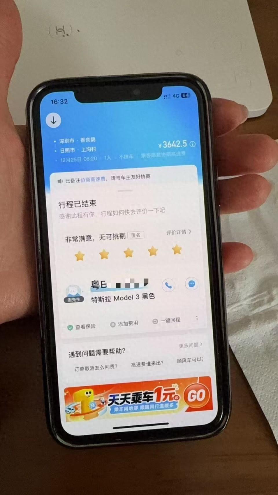 来自广东深圳的曾女士反映,她弟弟小曾于2024年12月25日从深圳市南山区返回汕尾陆丰市上沟(村),然而,由于输入地址时的疏忽,小曾错误地选择了山东省日照市上沟村作为目的地。曾女士告诉华商报大风新闻记者,正常情况下,从深圳到陆丰的打车费用应在150-300元之间,但这趟行程,却收了小曾3642.5元。