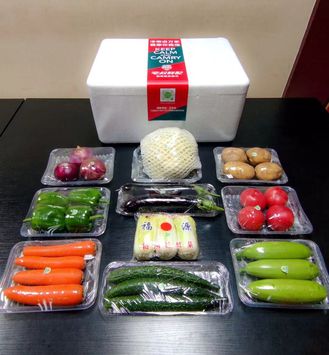 针对疫情期间消费者“囤菜”的新习惯,凯瑞开放蔬菜基地,开始在线上销售蔬菜礼包。蔬菜礼包中包含十种蔬菜,有黄瓜、洋葱、西红柿、西葫芦、土豆、胡萝卜等,一个礼包重量在十三到十五斤之间,售价79元,顾客可以通过凯瑞线上商城平台查找最近提货点,进行自提。