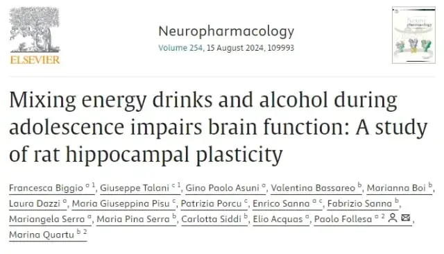 2024 年 8 月,在《神经药理学》(Neuropharmacology)期刊上发表的一项研究发现:“酒精+能量饮料”这样搭配着喝,对大脑造成的长期损害。
