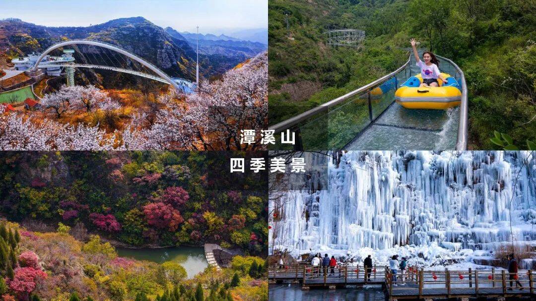 潭溪山于2010年开业迎客,开业15年来,景区打破季节性限制,依托优越的自然条件,推出“春花节”、“红叶节”、“冰瀑节”等时令活动,并结合特色地标性体验项目,打破固有制约条件,实现“春赏山花烂漫,夏享畅爽漂流,秋醉满山红叶,冬览冰瀑奇观”的“四季可游”的发展格局。