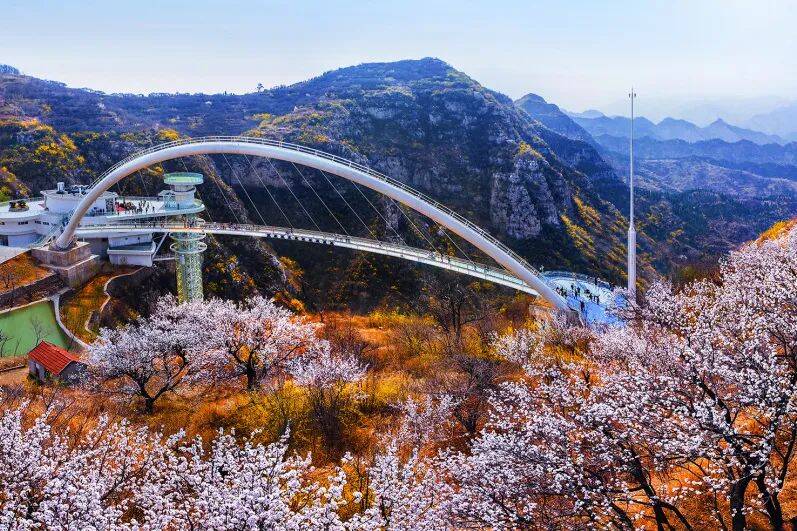 连翘花海解锁“黄金时代”樱花长廊再造“空中花路”