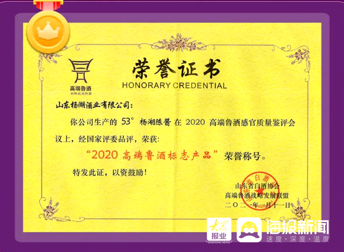 近日,由山东省白酒协会主办的“2020高端鲁酒感官质量鉴评会议”在济南召开。由国家级白酒评委组成的鉴评团队对全省60多家鲁酒企业的高端产品进行了感官质量鉴评。经过专家评委的认真多轮次鉴评,杨湖“53度陈酱”荣膺“2020高端鲁酒标志产品”。