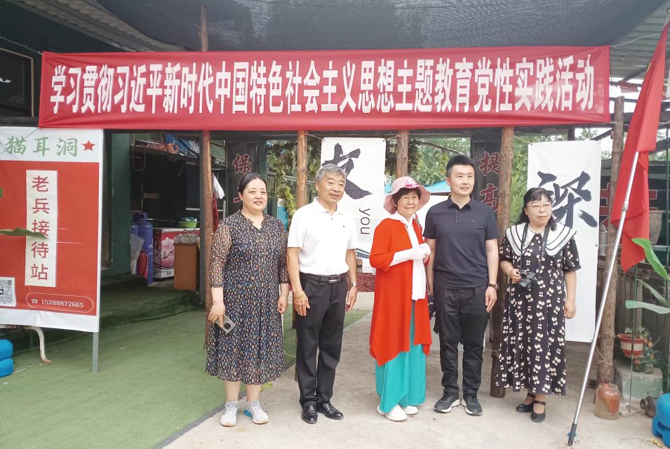 济南这几天一直是高温天气,连续几天气温在38℃,艳阳高照,骄阳似火,烈日炎炎。6月17日的早上气温却没有那么高,阴天,还有点微微小风,天公作美,兵妈妈早早地赶到集合地点等候在那里,慰问演出的队伍一行三十余人陆续都到了,大家坐着大巴车一路向南,开往西营的方向行驶,一路上,窗外绿树成荫,花儿微笑,风景优美,路过村庄,看到树木上结满了果子,路边有卖桃的、卖杏的、卖新鲜蔬菜的,现在正是瓜果飘香的季节。一个小时的路程到了目的地老兵之家(猫耳洞),参战老兵王恩亮早已等候在那里,欢迎大家的到来。