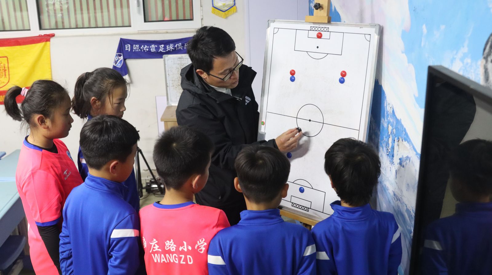 下午4点半,下课铃响,五年级学生宋昌润抱起足球冲向操场。在他身后,全校40个班级、80支男女足球队、637名小球员如潮水般涌向那片绿茵。奔跑、传球、射门——校园顷刻间沸腾。冬日里,彩色球衣跃动,足球划出流畅弧线,“砰、砰”的击球声与欢笑声交织,这里不仅是校园,更是属于孩子们的动态课堂。
